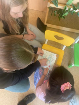 Lielais apskāviens Mārīšu grupai Miezītes bibliotēkā...
